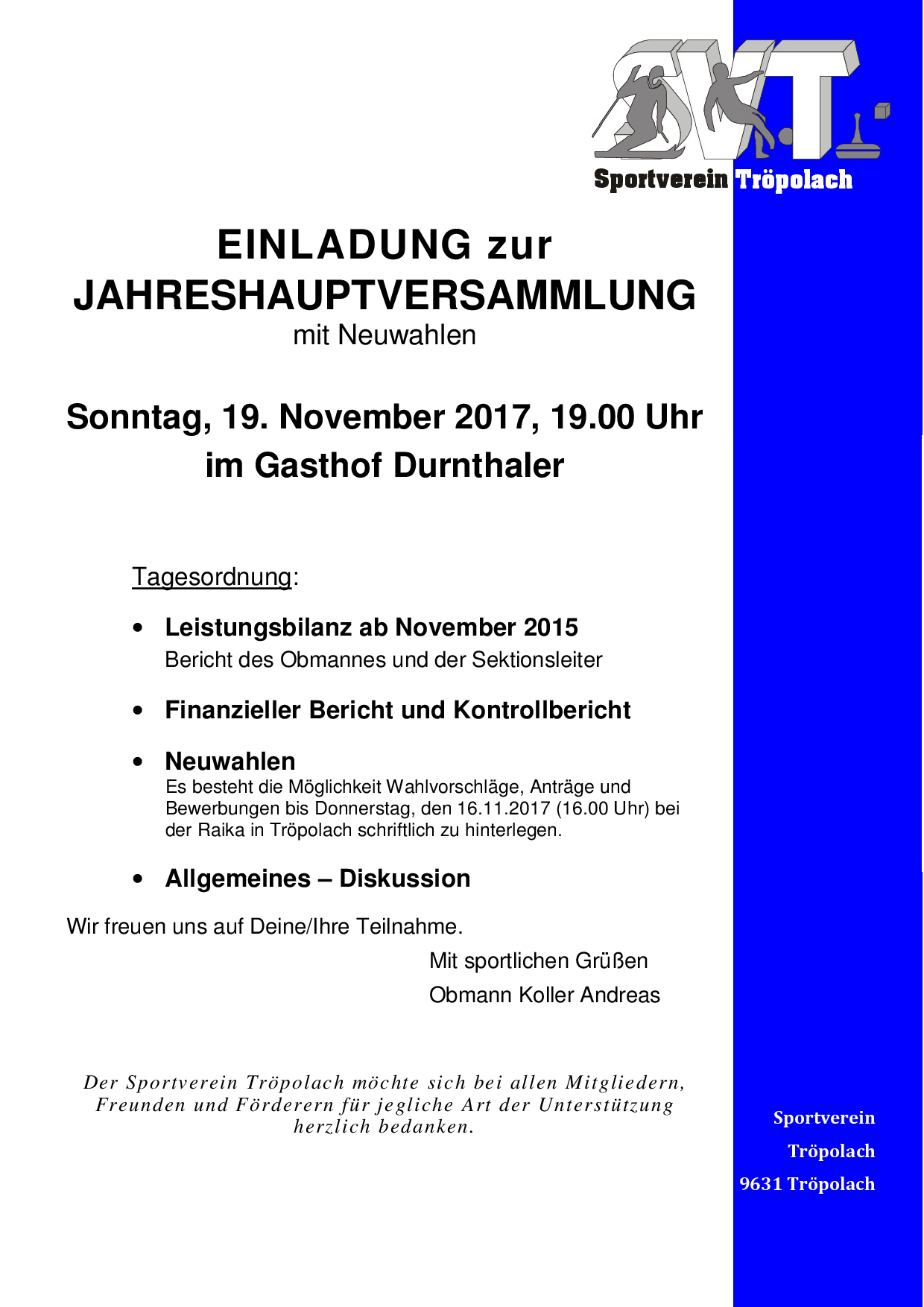 Jahreshauptversammlung 2017 mit Neuwahlen