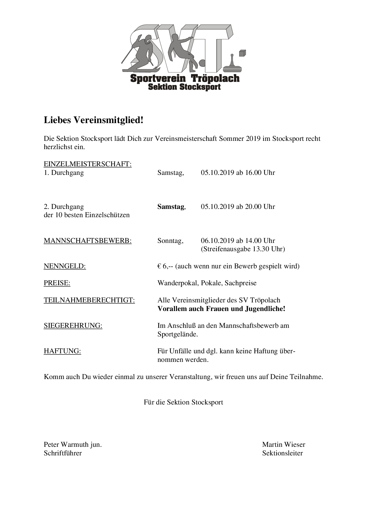 Vereinsmeisterschaft Stock 2019 - Einzel