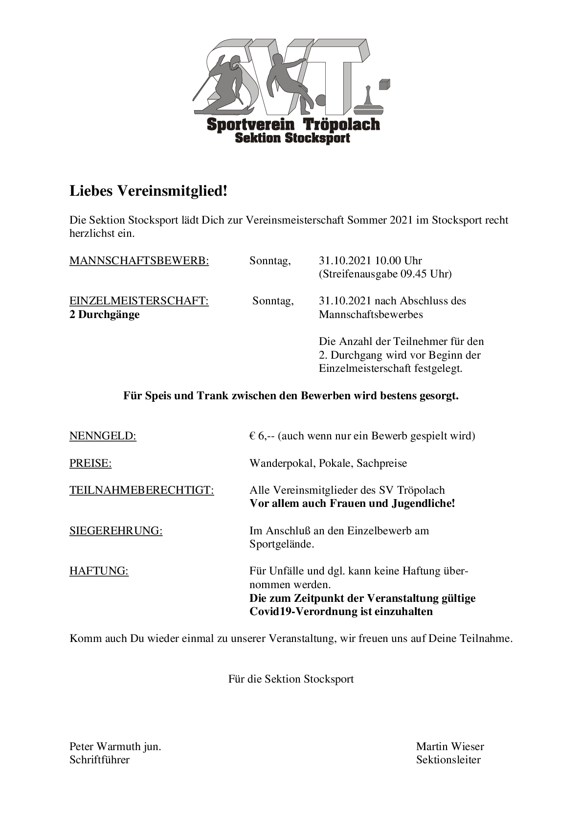 Vereinsmeisterschaft Stocksport Sommer 2021