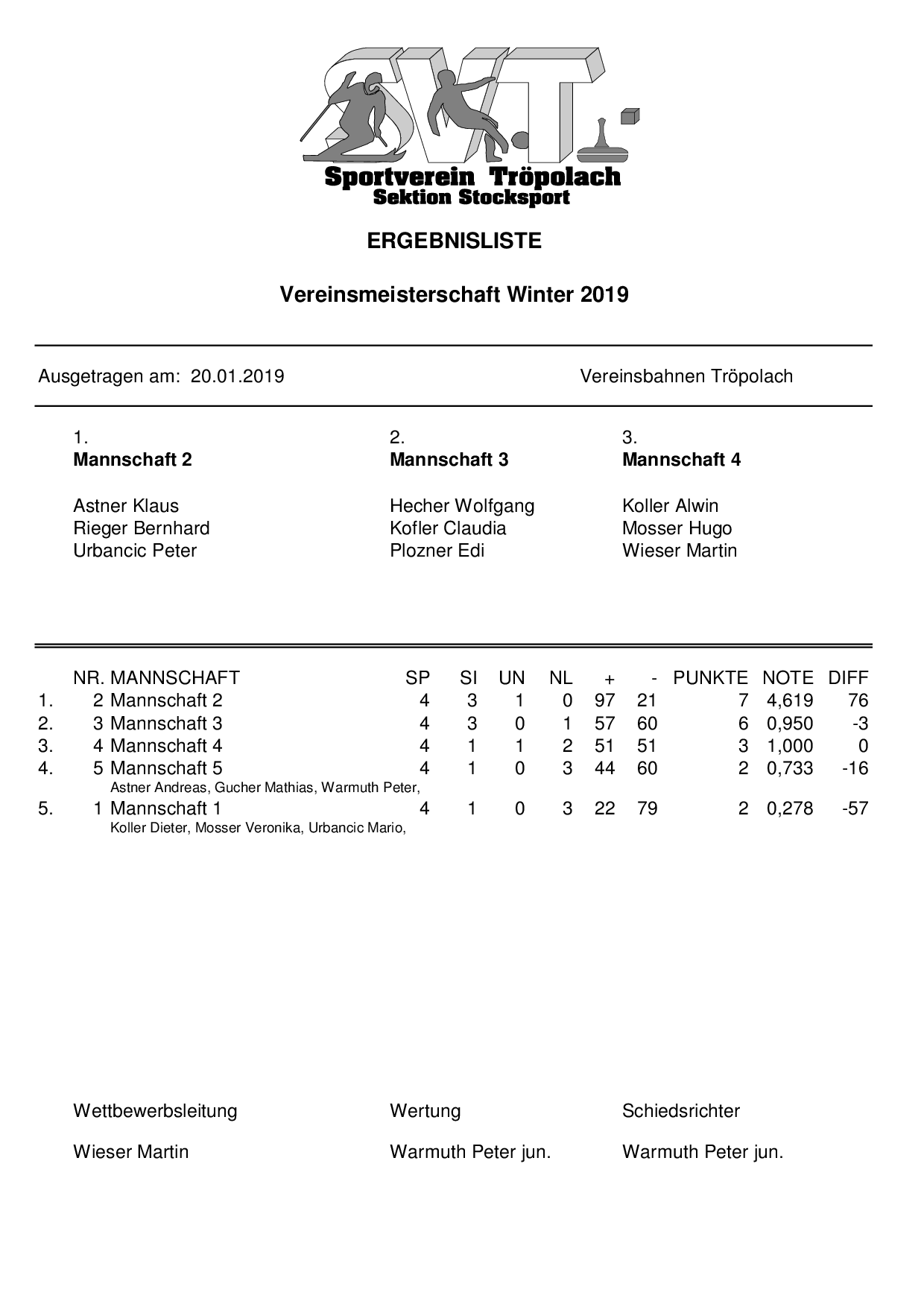 Ergebnis Mannschaft als PDF-Download