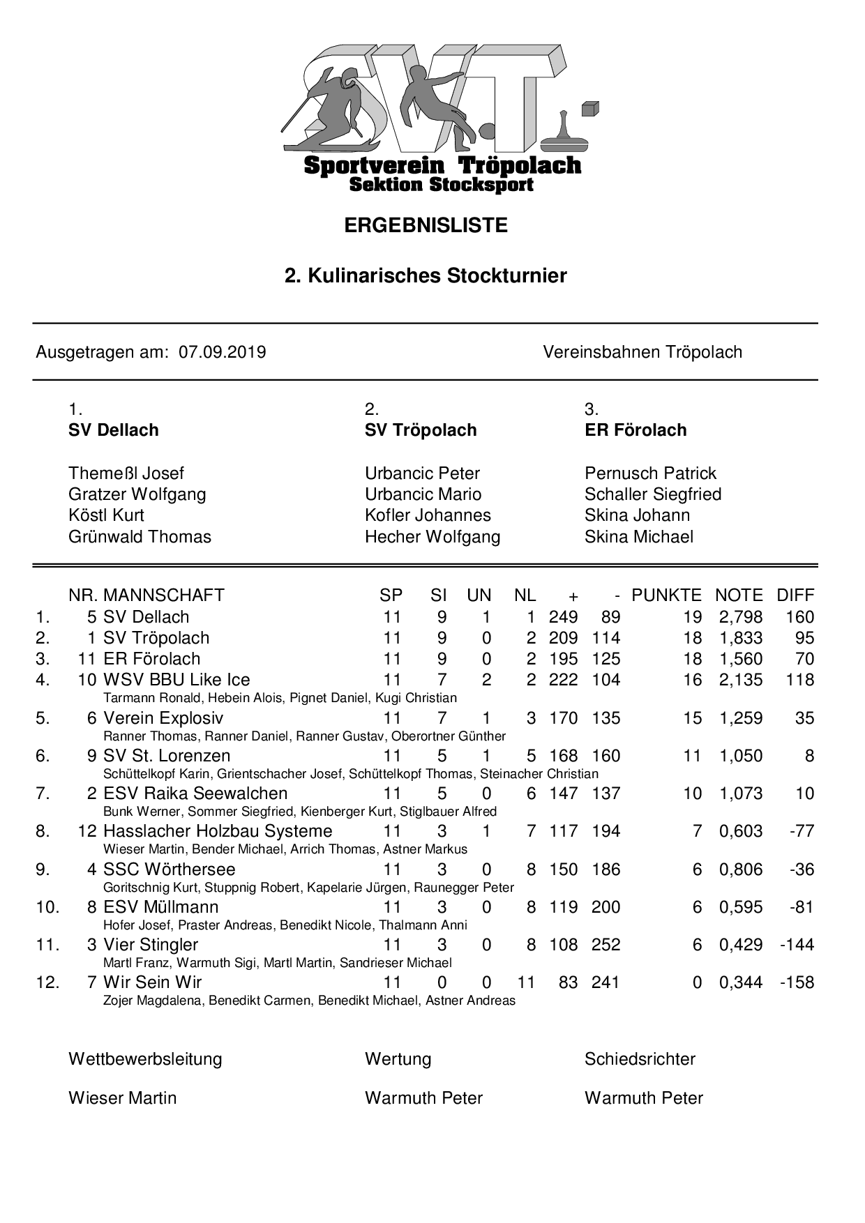 2. Kulinarisches Stockturnier