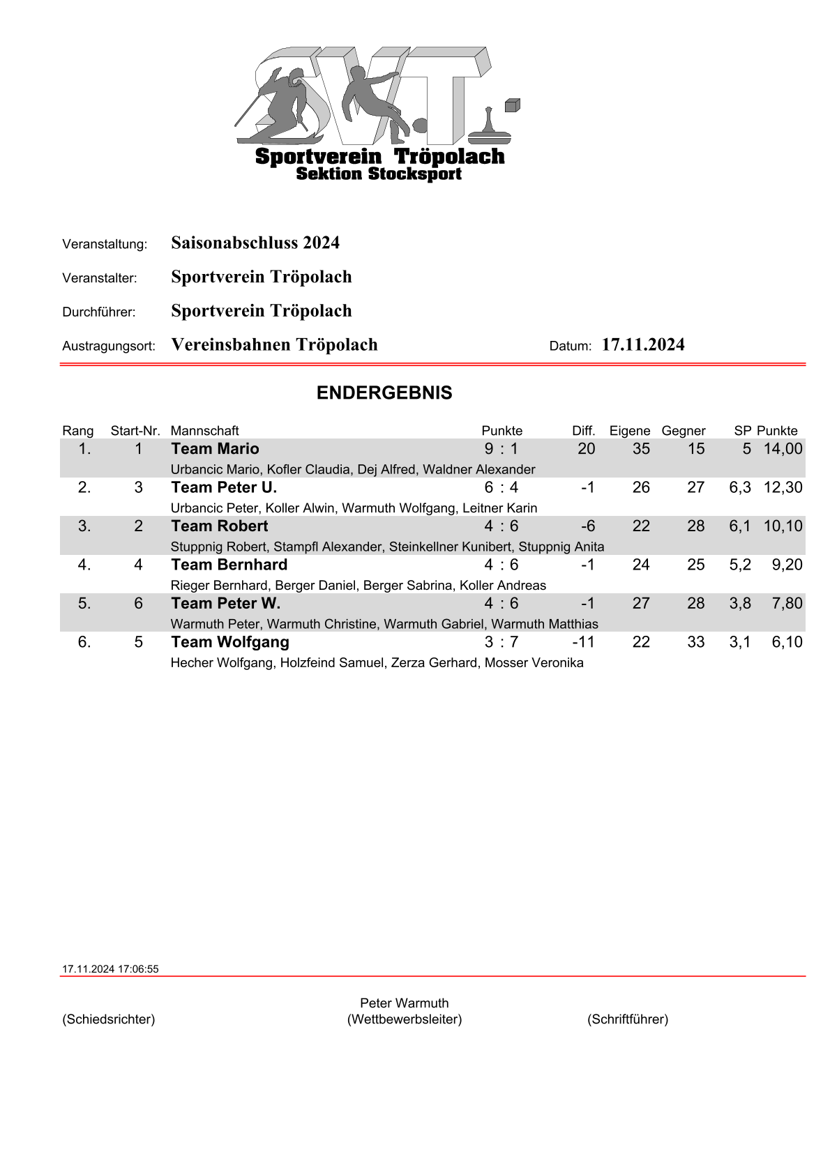 Auch heuer lud die Sektion Stocksport am 17.11.2024 wieder zu einem Turnier der etwas anderen Art.