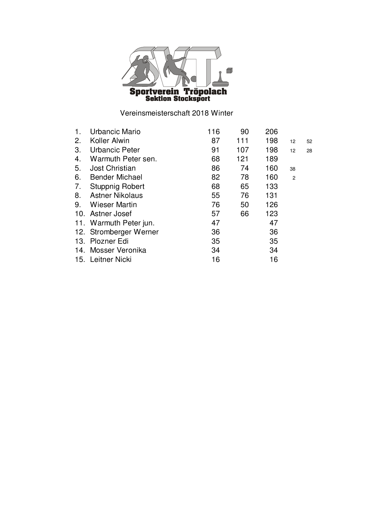 Vereinsmeisterschaft Stock Winter 2018