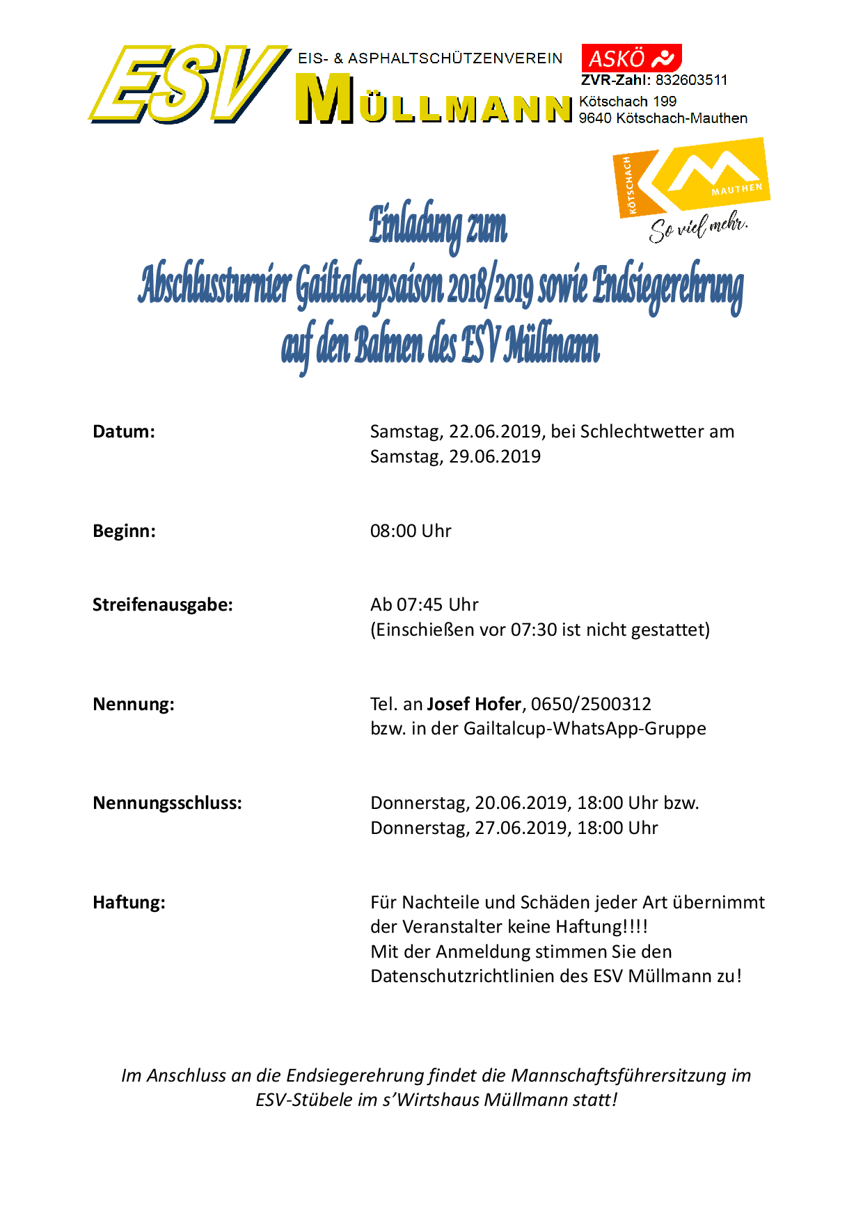 Ausschreibung Abschluss Gailtalcup Stock 2019
