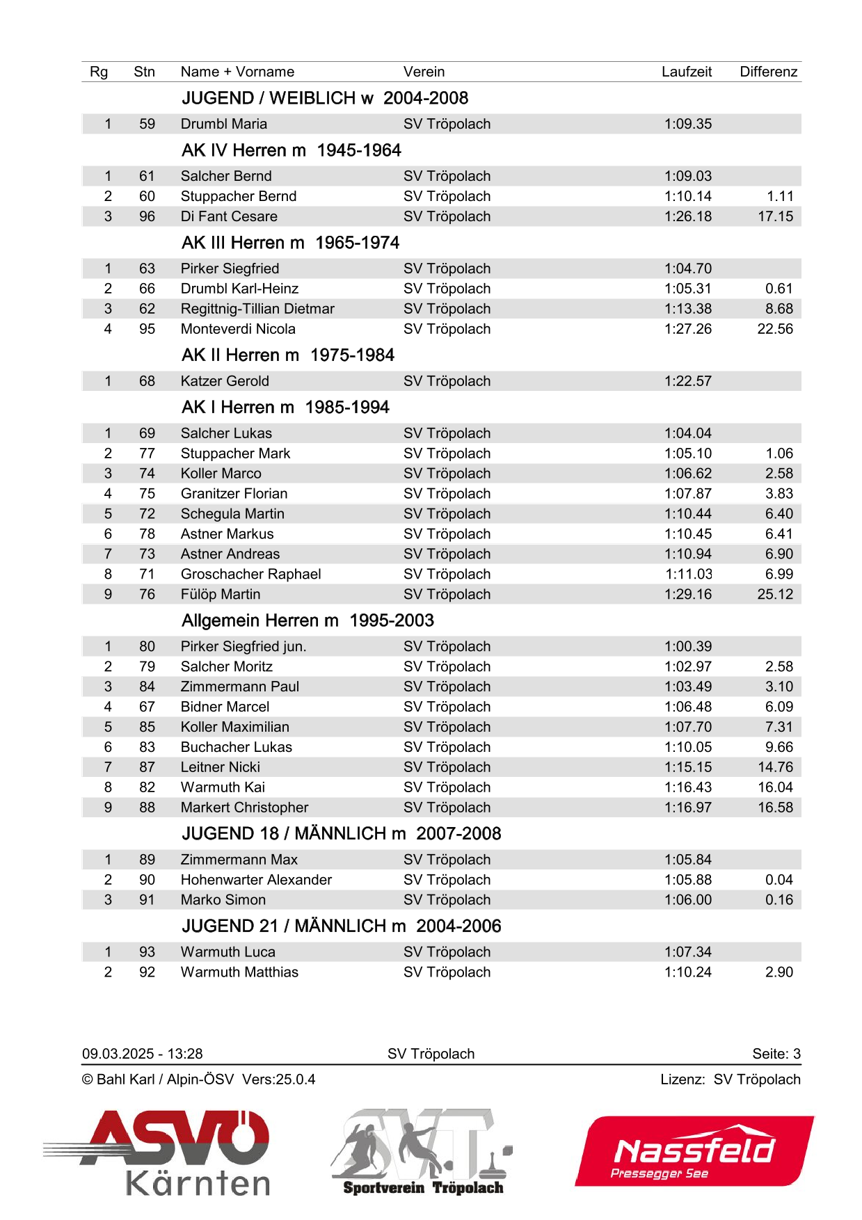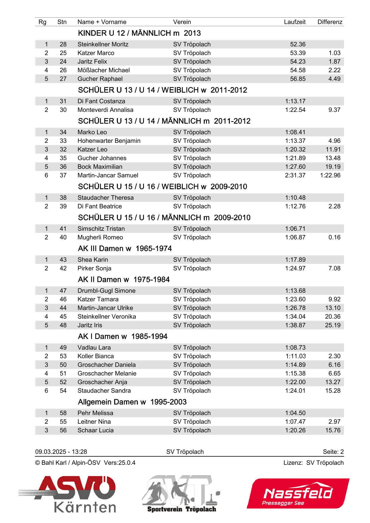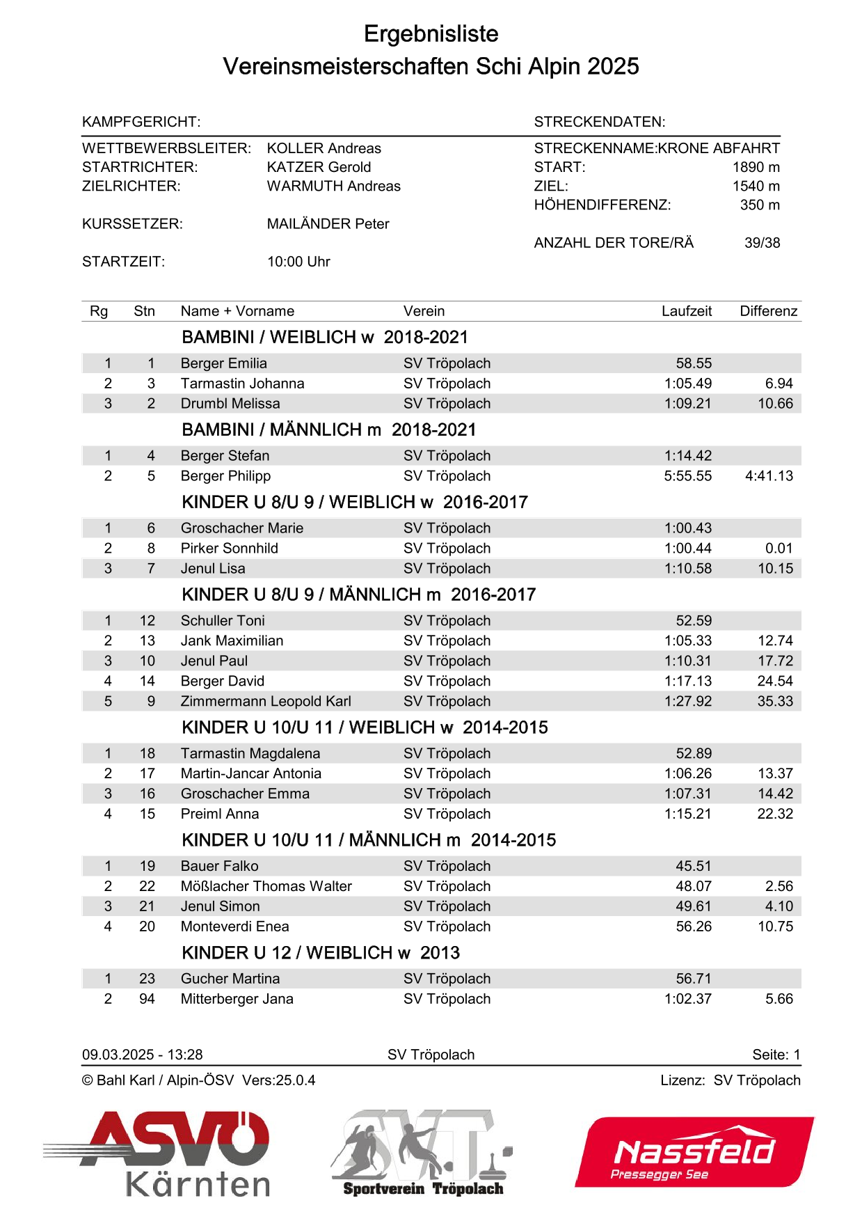 Am Sonntag, den 09. März fand die Vereinsmeisterschaft Ski Alpin des Sportverein Tröpolach statt.